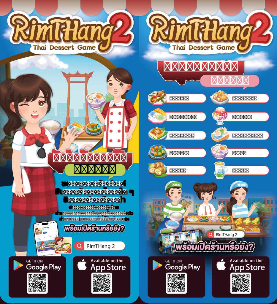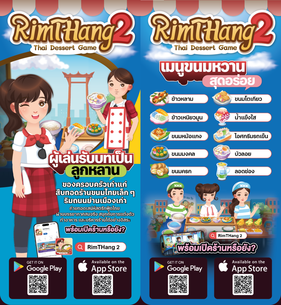 เกม RimTHang 2 พาผู้เล่นสวมบทเป็นลูกหลานของครอบครัวผู้เชี่ยวชาญด้านการทำขนมไทยที่มีร้านอยู่ย่านเมืองเก่า วันหนึ่งผู้เล่นค้นพบ “สมุดสูตรขนมของคุณทวด” ที่บันทึกสูตรลับโบราณทั้งซับซ้อนและต้องใช้ฝีมือขั้นสูง จึงเกิดภารกิจฟื้นฟูสูตรขนมหวานไทยให้กลับมาโด่งดังอีกครั้ง โดยผู้เล่นสามารถสร้างตัวละครในสไตล์ของตนเอง และเลือกทำเลเปิดร้านได้ถึง 10 สถานที่สำคัญของกรุงเทพฯ ได้แก่ เยาวราช ถนนบรรทัดทอง เสาชิงช้า อารีย์ สีลม ถนนข้าวสาร ตลาดบางรัก ตลาดนัดเลียบด่วนรามอินทรา ถนนทรงวาด และตลาดรถไฟ รูปแบบการเล่นออกแบบให้ผู้เล่นทำขนมไทยตามออเดอร์ให้ถูกต้องและทันเวลา โดยมีเมนูขนมยอดนิยม 10 รายการ ได้แก่ บัวลอย ลอดช่อง ข้าวเหนียวมูน ข้าวหลาม ขนมหม้อแกง ขนมมงคล ขนมครก ขนมโตเกียว น้ำแข็งใส และไอศกรีมรถเข็น